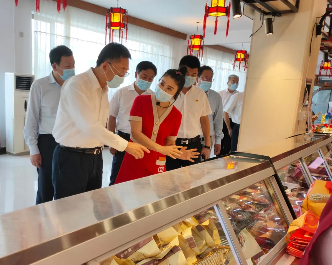 劉寧省長分別參觀了集團(tuán)黨建室、熏雞車間和集團(tuán)展廳。參觀過程中,集團(tuán)董事長王麗娜向劉寧省長介紹了我集團(tuán)私企黨建工作、企業(yè)生產(chǎn)工藝、質(zhì)量控制、產(chǎn)能、銷售半徑等經(jīng)營情況。